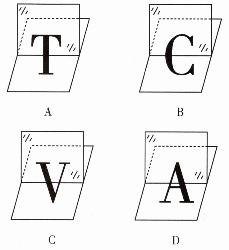 2. 在探究平面镜成像特点的过程中,小明把4个模型图分别面对玻璃直立在桌面上,如图所示,用于研究像与物左右位置的关系,其中能够达到实验目的的是( ).