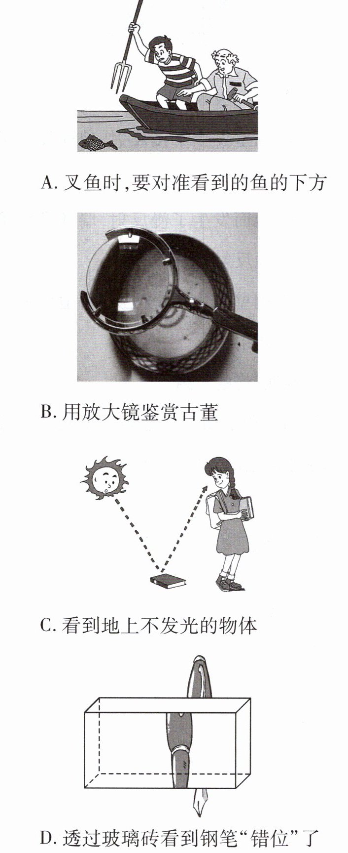 4. 如图所示的4种情景中,属于光的反射现象的是( ).