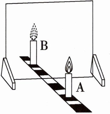 3. 如图是探究“平面镜成像的特点”的情景:竖立的透明玻璃板下方放一把刻度尺,刻度尺与玻璃板垂直;两支相同的蜡烛A、B竖立于玻璃板两侧的刻度尺上,以蜡烛A为成像物体.
