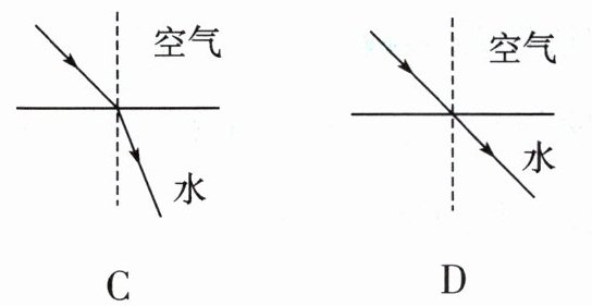 6. 图中哪个图正确地表示了光从空气斜射入水中的情况?( )