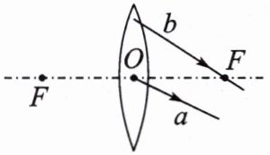 (1) 明确图中a、b是两条折射光线,且a光线经过透镜的光心,b光线经过右焦点.