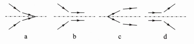 图中画出了光线通过透镜(图中未画出)的情形,其中透镜是凸透镜的是( ).