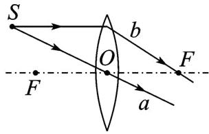 (2) 根据3条特殊光线的光路和光路可逆,作出a、b两条折射光线的入射光线. a光线经过透镜的光心,方向不变;b光线经过右焦点,其入射光线平行于主光轴.