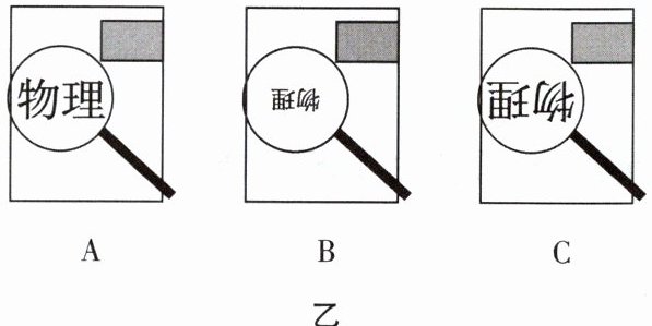 让我们亲自来探究一下,请始终伸直手臂握住一个放大镜,用一只眼睛透过放大镜来观察竖立在桌面上的物理课本(如图甲所示),让放大镜从贴着课本开始慢慢地后退,直到离课本足够远的距离,在这过程中他能看到图乙中的哪些成像情形? 按照观察顺序,序号依次是___________(用字母表示).