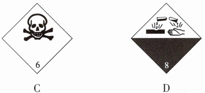 6. 下列化学实验所用试剂的标志中表示腐蚀品的是( )。