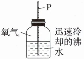 4. 如图所示,向盛满氧气的集气瓶中倒入迅速冷却的沸水,立即塞紧插有两端开口的细玻璃管的橡皮塞,用注射器向玻璃管注水至 P 处,然后手拿集气瓶在水平面上摇晃数十次。下列有关说法正确的是( )。