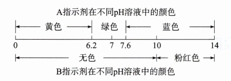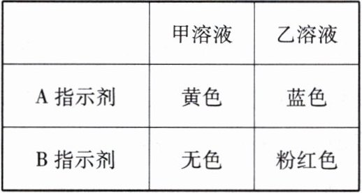 9. 有 A、B 两种酸碱指示剂,它们的变色情况与溶液 pH 的关系如图所示,它们在甲溶液和乙溶液中显示的颜色如表所示。下列判断错误的是( )。