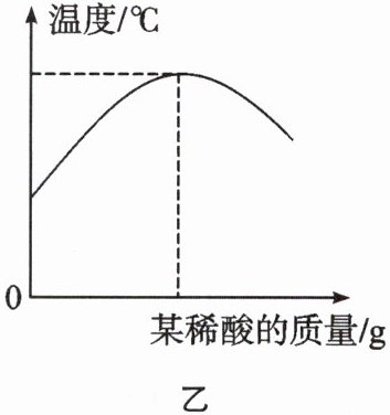 (2) 写出一个符合反应②的化学方程式:________________________;小红同学将某稀酸溶液逐滴滴入一定量的稀氢氧化钠溶液中,用温度传感器对反应过程中溶液的温度进行实时测定,得到的曲线如图乙,根据图像可以得出该反应是__________(填“吸热”或“放热”)反应。