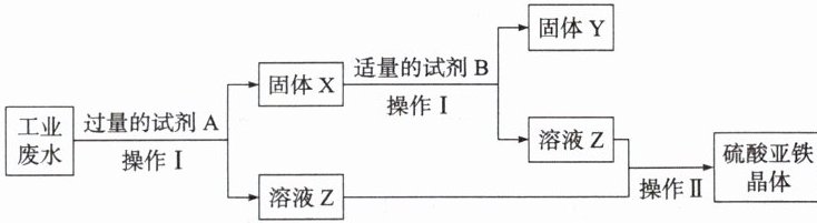 7. 为了从含有${FeSO_{4}}$、${CuSO_{4}}$的工业废水中回收${Cu}$和硫酸亚铁晶体,某学习小组设计并完成了以下实验。下列说法正确的是( )。