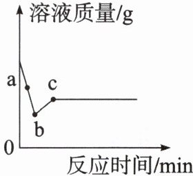 6. 竞争无处不在,微观粒子之间的反应也是如此。将足量的${Zn}$粉投入一定质量的${AgNO_{3}}$和${Cu(NO_{3})_{2}}$的混合溶液中发生反应,溶液的质量随时间的变化关系如图所示。下列说法不正确的是( )。