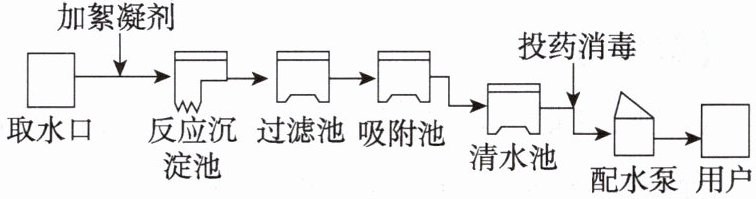 3. 水是生命之源。城市生活用水经自来水厂净化处理的过程如图所示。下列说法错误的是( )。