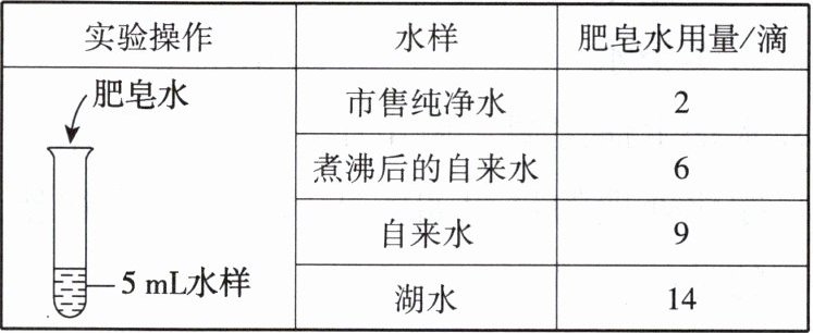 【进行实验】用 4 种水样完成实验,记录观察到泡沫产生时所需肥皂水的用量。