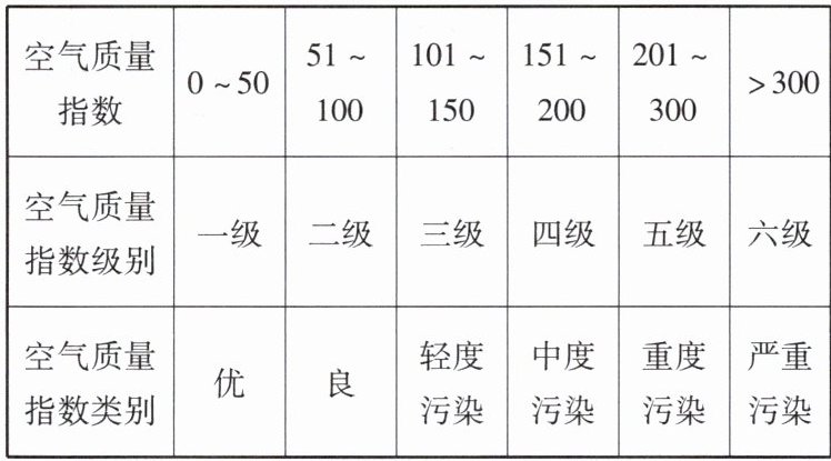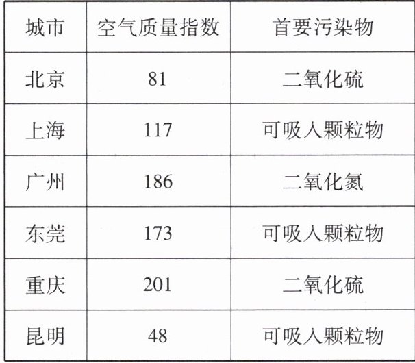 6. 某一天,下列城市的空气质量监测数据如下表: