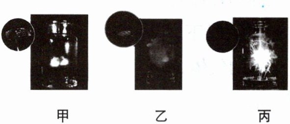 8. 氧气是一种化学性质比较活泼的气体,它可以和许多物质发生反应。下图甲、乙、丙分别是木炭、硫粉和细铁丝在空气中和氧气中的反应。
