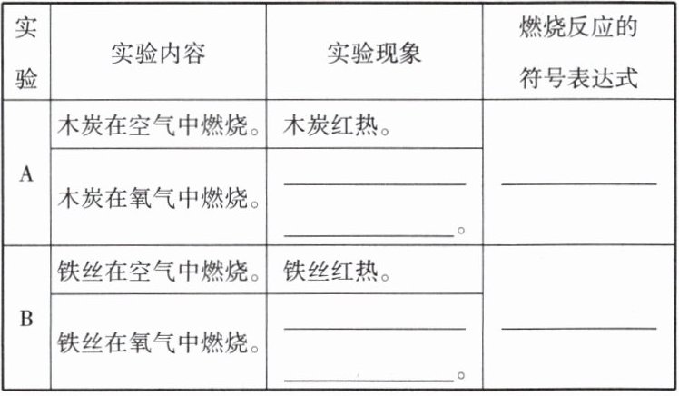 6. 化学反应的剧烈程度与反应物浓度之间有一定规律。某实验小组各取等质量的木炭和等质量的铁丝分别在容积相同的容器中燃烧,记录如下: