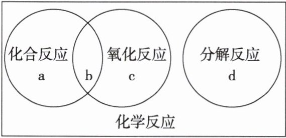 3. 化学反应有多种分类,化合反应、分解反应、氧化反应的关系可用下图表示,其中b处可表示的化学反应是( )。