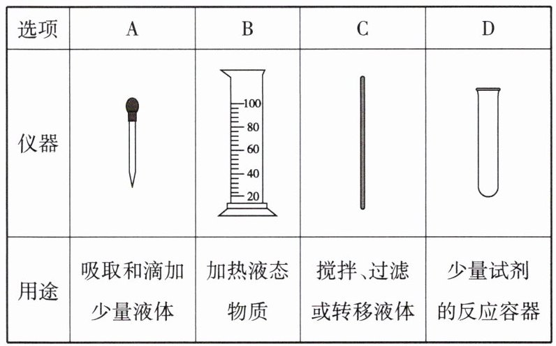 4. 下表是化学实验室部分常用仪器,其用途有误的是( )。