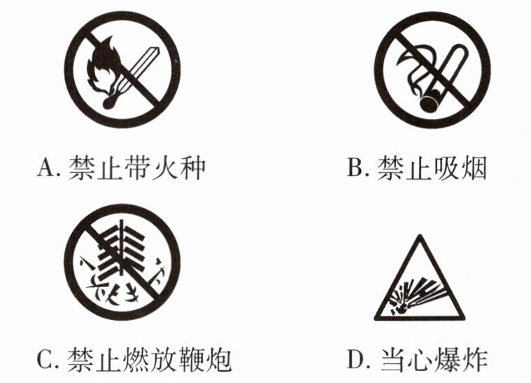 4. 在生产、运输、使用和贮存易燃物和易爆物时,必须了解有关图标的含义并严格遵守有关规定,绝不允许违章操作。下列与燃烧和爆炸有关的图标中错误的是( )。