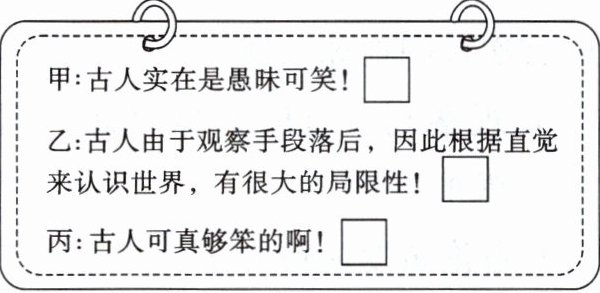 (1)下面三条对古人的评价,你最为认同的是哪一个?请在后面的方框中打“√”。