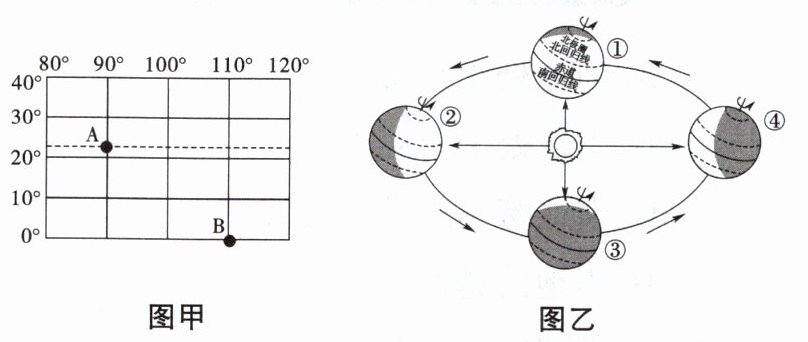 11. 【核心素养·综合思维】读某区域经纬网图(图甲)和地球公转示意图(图乙),完成相关问题。