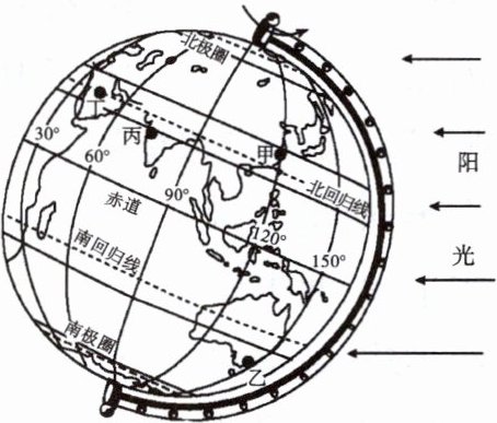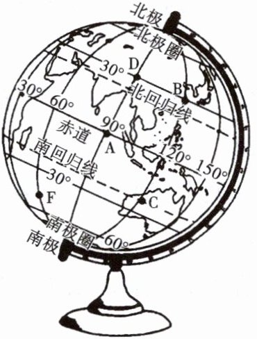 人们根据地球的形状并按一定的比例缩小后,制作成地球的模型——地球仪。读图,完成第1—2题。