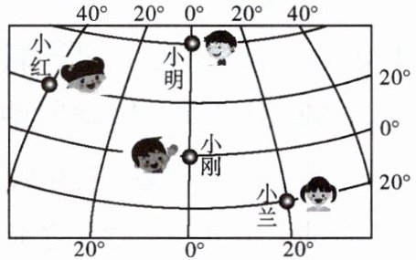 6. 读经纬网图,判断下列关于图示4个小朋友所在位置的叙述,正确的是(