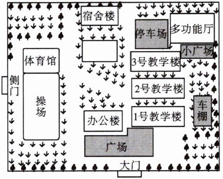 2. 在认识地图的过程中,济宁的小明绘制了学校的平面图。依据小明绘制的平面图,我们不能做到的是(