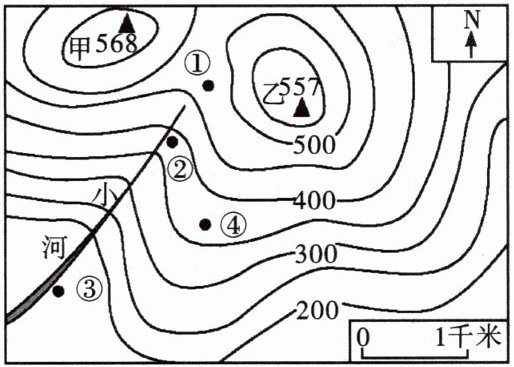 读等高线地形图(单位:米),完成第 3—4 题。[img]
