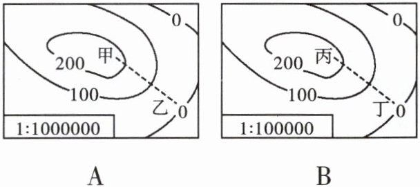 D.甲—乙的实地距离小于丙—丁的实地距离