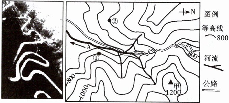 (1)图示①②两地中,坡度较陡的是