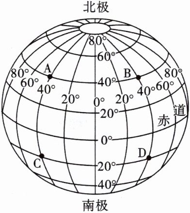 (5)如图所示,如果 A 点所在经线以东为西半球,以西为东半球,则 C 点的地理坐标是