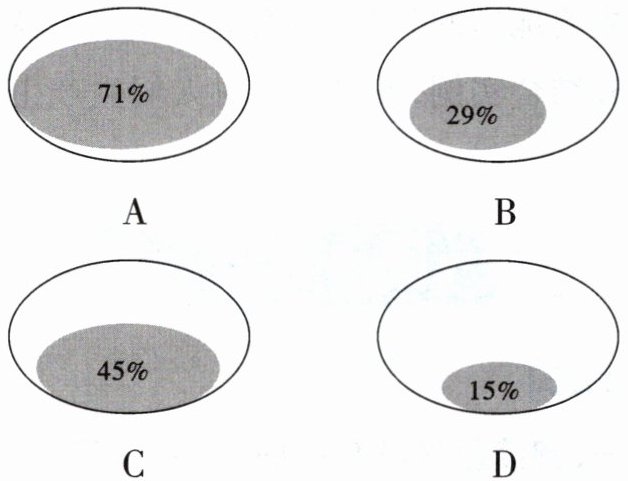 1. 若深色区域代表陆地占地球表面积的比例,下列能正确表示地球海陆分布状况的是(
