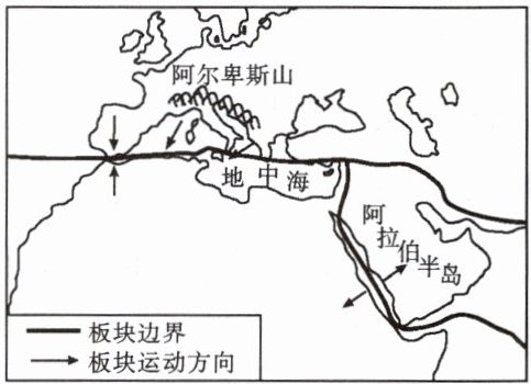 6. 图示地区地壳活跃,板块运动明显。读图可知(