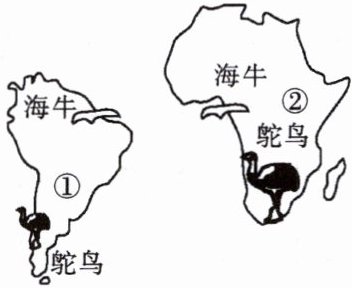 3. 下图所示海牛、鸵鸟分布在大西洋的两岸,最可能的原因是(