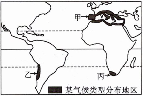 3. 读世界局部地区分布示意图可知,甲、乙、丙 3 地的气候类型都是(