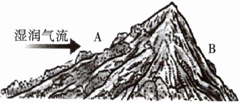 8. 下列关于图示山地 A 坡与 B 坡降水量的说法,正确的是(