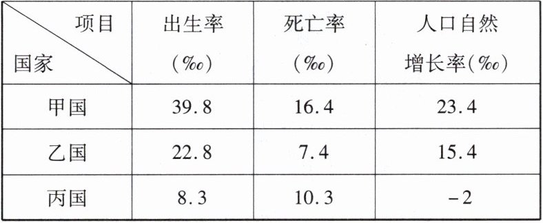 3. 读3个国家某年的出生率、死亡率及人口自然增长率统计表,下列说法正确的是(