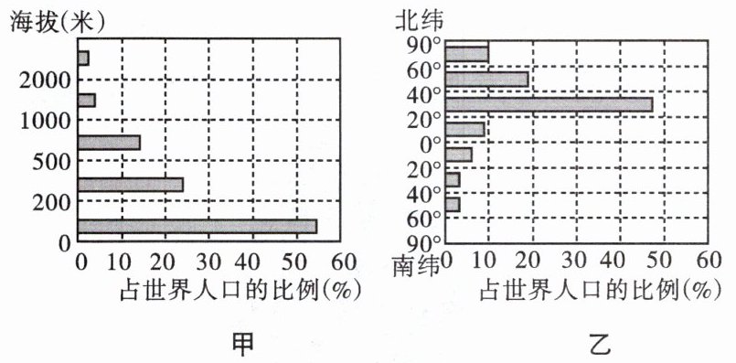 世界人口分布不均匀,但又有一定的规律。读图,完成第4—5题。