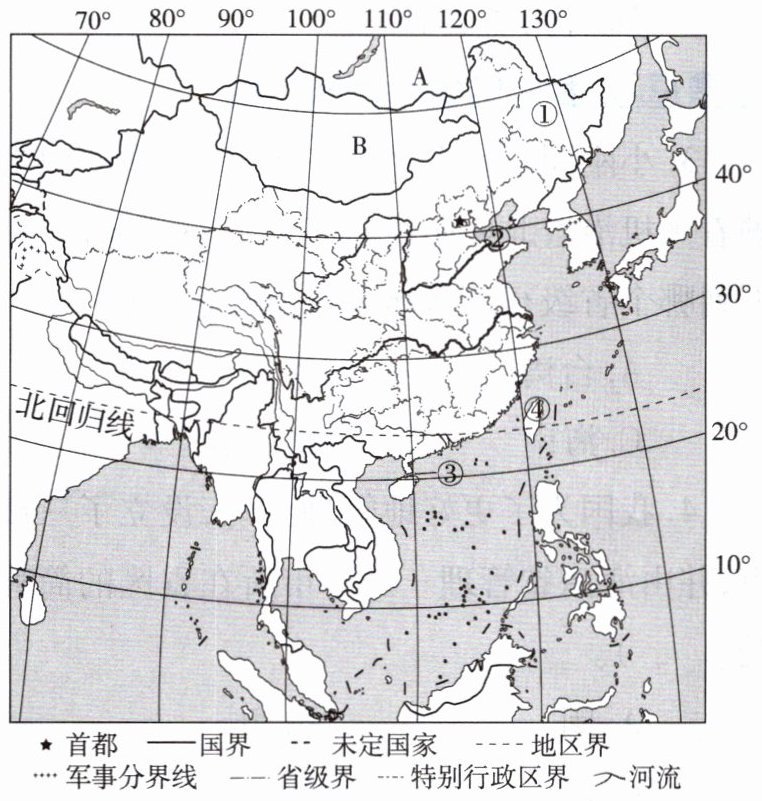 11. 2024年8月29日是第21个全国测绘法宣传日。了解国家版图,认知国家版图,树立国家版图意识是每一位中国公民应尽的义务和责任。读图,完成相关问题。