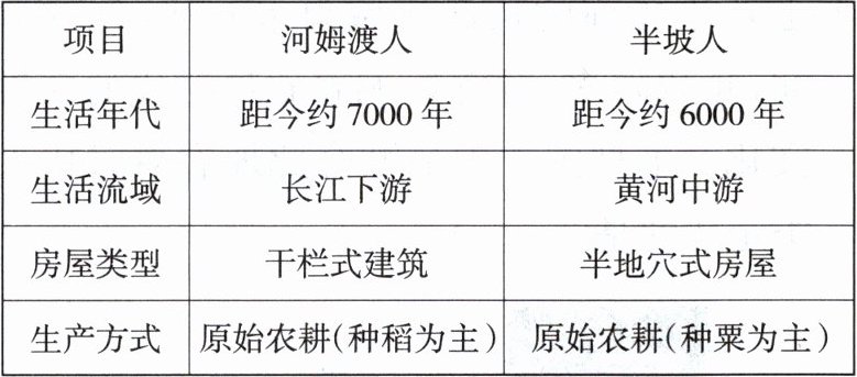 7. 下表为河姆渡人与半坡人的生活状况对照表。据此可知( )。