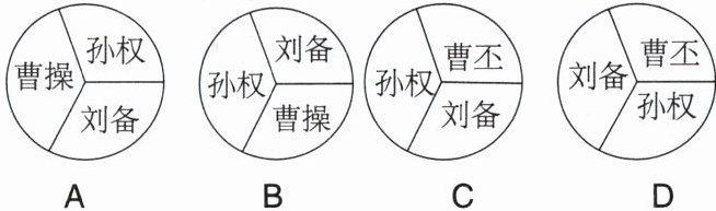 1. 图示法是学习历史的一种好方法,它能将复杂的历史直观形象地展示出来。下面哪一幅图正确反映了三国鼎立的形势?( )