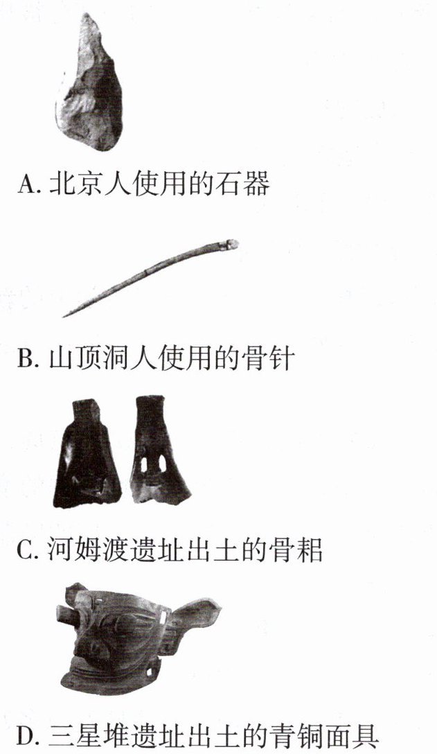 5. (山东东营)考古发现是了解史前社会历史的重要依据。下列考古发现中能够帮助我们了解原始农耕生活的是( )。