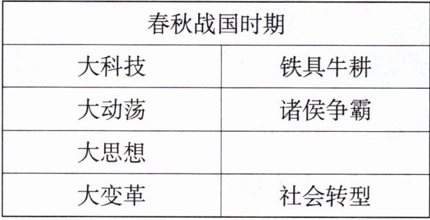 8. 以下是春秋战国时期时代特征示意表,表中“大思想”处的内容应是( )。