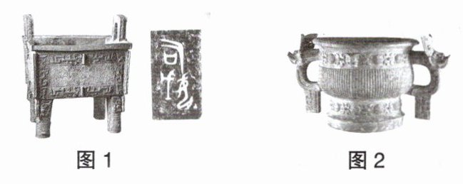 图1为司母戊鼎及鼎内铭文。图2为西周康侯簋,此件青铜器铸造精美,簋内所铸铭文记载,周武王的兄弟康侯参加了一场平定商人叛乱的战争,得到卫国的封地。