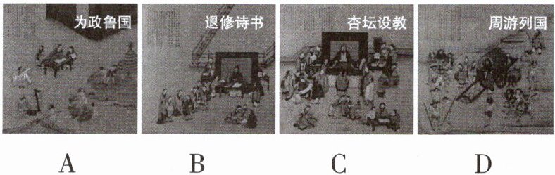 5.(山东潍坊)中国国家博物馆举办“高山景行——孔子文化展”,用图画勾勒出了孔子的一生,其中最能体现孔子教师身份的是( )。
