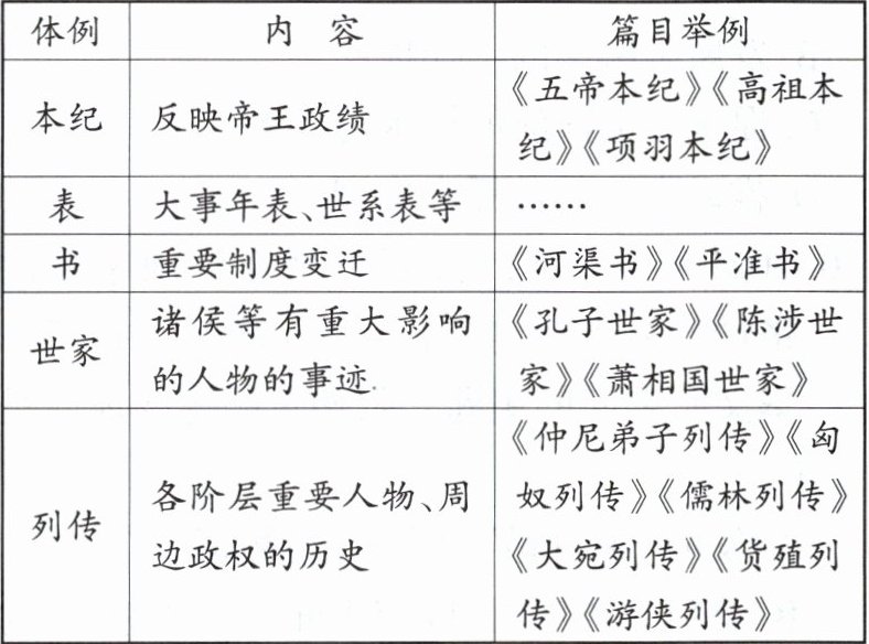 (3)司马迁。司马迁著有中国古代第一部纪传体通史——《史记》。