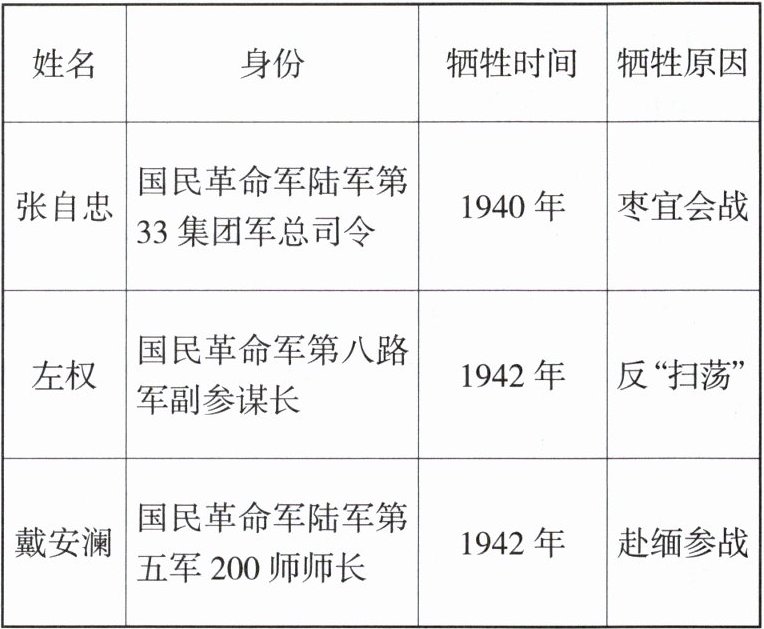 14. 下表信息摘自中华人民共和国民政部公布的《300名著名抗日英烈和英雄群体名录》。表中信息能共同印证的史实是( )。