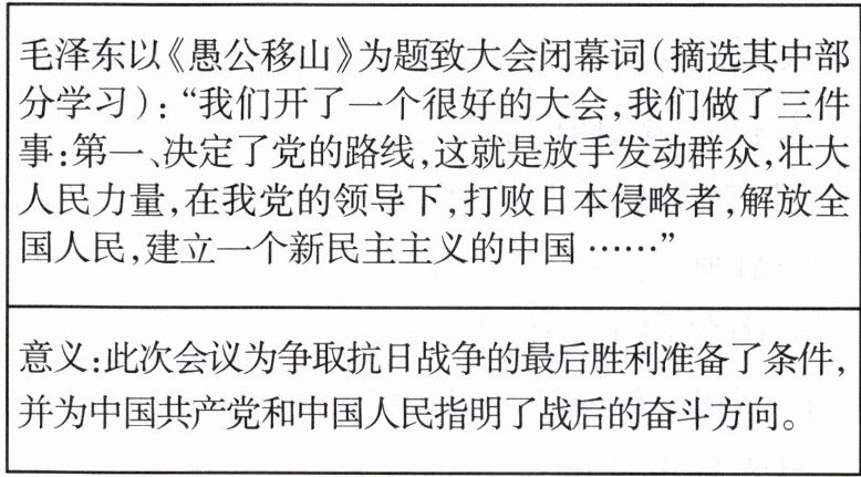 4. 以下是某同学整理的中国共产党历史上一次重要会议的部分材料,据此可知,这次大会的历史贡献还有( )。