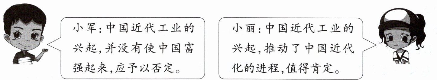 材料三 小军、小丽对中国近代工业所起作用的评价。