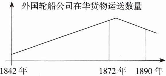 (1)概括材料一的主要观点。根据材料二和所学知识,指出 1842—1890 年外国轮船公司在华货物运送数量变化的特点。简析其变化的主要原因。